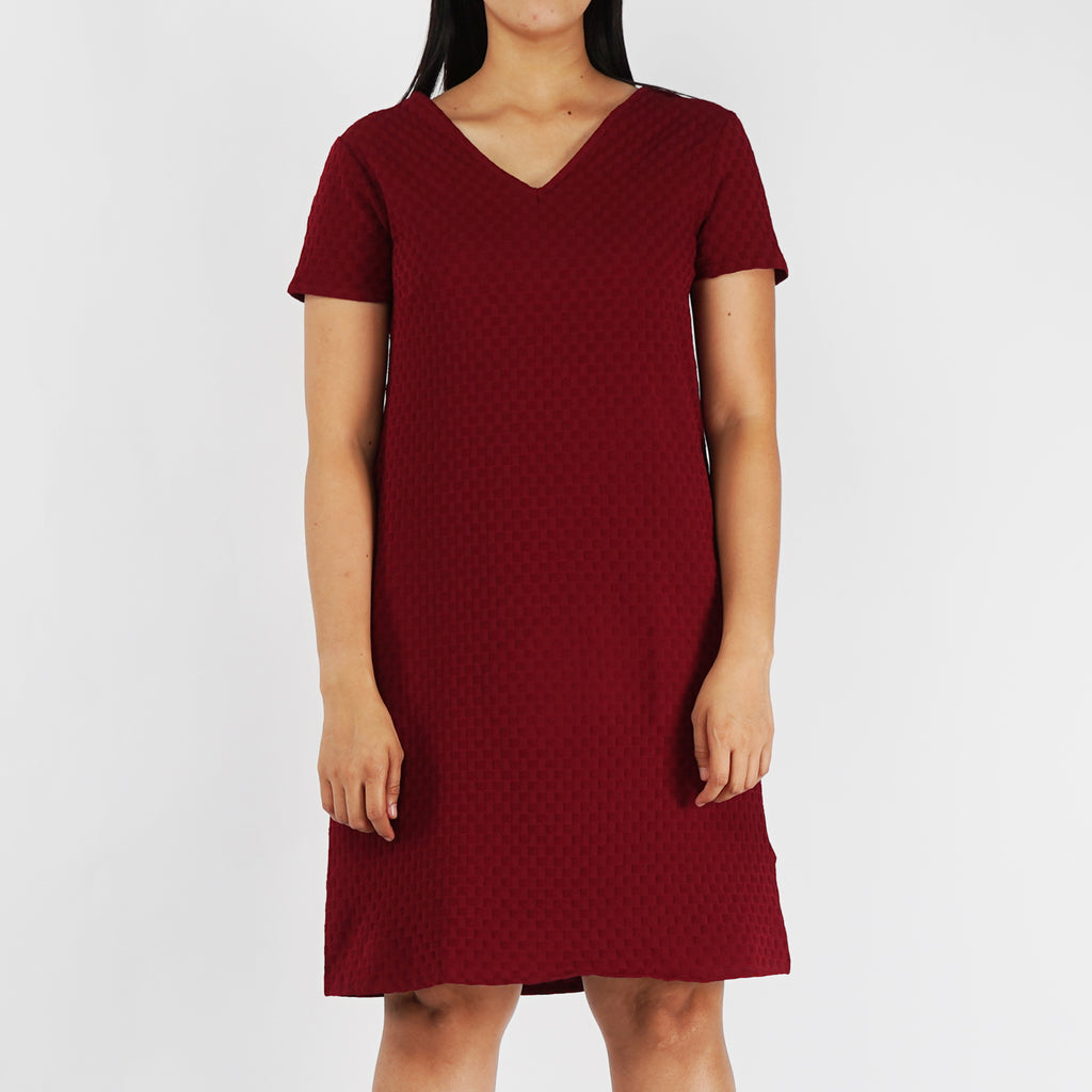 Stylistic Mr. Lee Ladies Basic V-Neck Dress for Women Trendy Fashion High Quality Apparel Comfortable Casual Dress for Women Regular Fit 141713 (Red)