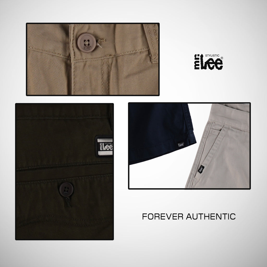 Product Details: Stylistic Mr. Lee Men's Basic Non-Denim Tapered Short Mid Waist 187804-U (Gray)